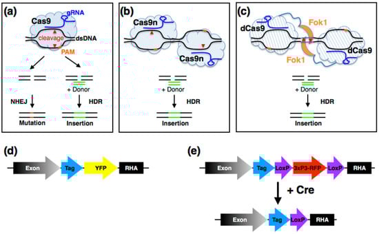 - Ran, F.A.; Hsu, P.D.; Lin, C.Y.; Gootenberg, J.S.; Konermann, S.; Trevino, A.E.; Scott, D.A.; Inoue, A.; Matoba, S.; Zhang, Y.; et al. Double nicking by rna-guided crispr cas9 for enhanced genome editing specificity. Cell 2013, 154, 1380–1389. [Google Scholar] [CrossRef] [PubMed]