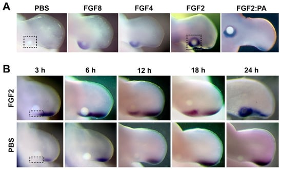 - Fallon, J.F.; Lopez, A.; Ros, M.A.; Savage, M.P.; Olwin, B.B.; Simandl, B.K. Fgf-2: Apical ectodermal ridge growth signal for chick limb development. Science 1994, 264, 104–107. [Google Scholar] [CrossRef] [PubMed]