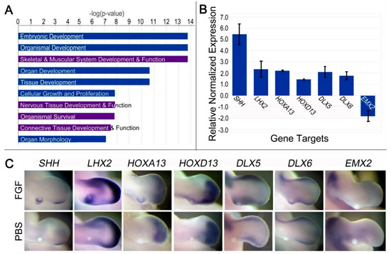3.5. Prolonged FGF (24 h) Regulates Genes Associated with Dedifferentiation, Distalization, and SHH Regulation