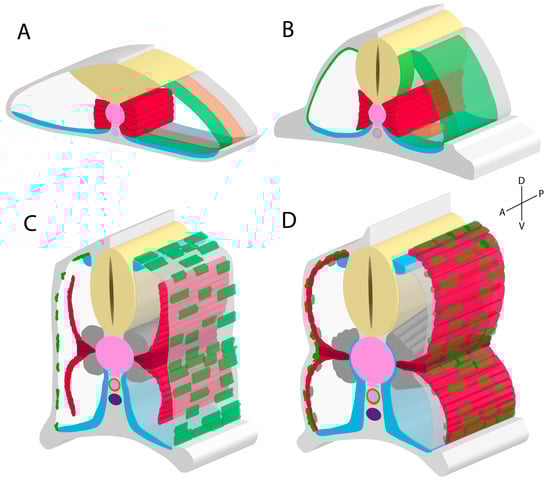 - Waterman, R.E. Development of the lateral musculature in the teleost, Brachydanio rerio: A fine structural study. Am. J. Anat. 1969, 125, 457–493. [Google Scholar] [CrossRef]