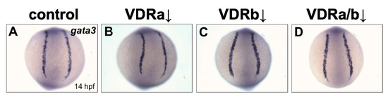 - Neave, B.; Rodaway, A.; Wilson, S.W.; Patient, R.; Holder, N. Expression of zebrafish GATA 3 (gta3) during gastrulation and neurulation suggests a role in the specification of cell fate. Mech. Dev. 1995, 51, 169–182. [Google Scholar] [CrossRef]