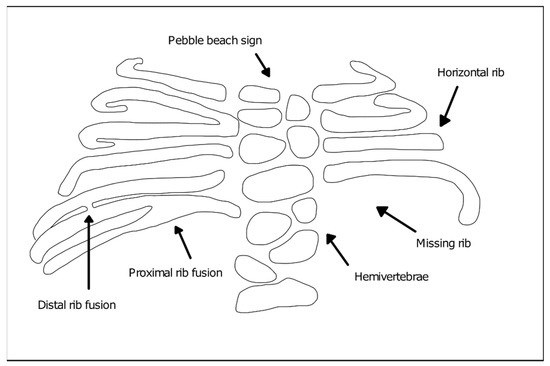 - Southam, B.R.; Schumaier, A.P.; Crawford, A.H. Spondylocostal Dysostosis: A Literature Review and Case Report with Long-Term Follow-Up of a Conservatively Managed Patient. Case Rep. Orthop. 2018, 2018, 1–6. [Google Scholar] [CrossRef]