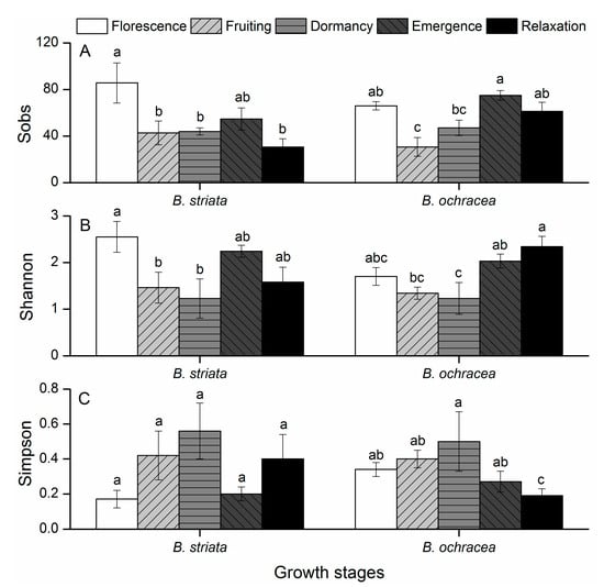 Zeng, X.; Diao, H.; Ni, Z.; Shao, L.; Jiang, K.; Hu, C.; Huang, Q.; Huang, W. Temporal Variation in Community Composition of Root Associated Endophytic Fungi and Carbon and Nitrogen Stable Isotope Abundance in Two Bletilla Species (Orchidaceae). Plants 2021, 10, 18. https://doi.org/10.3390/plants10010018