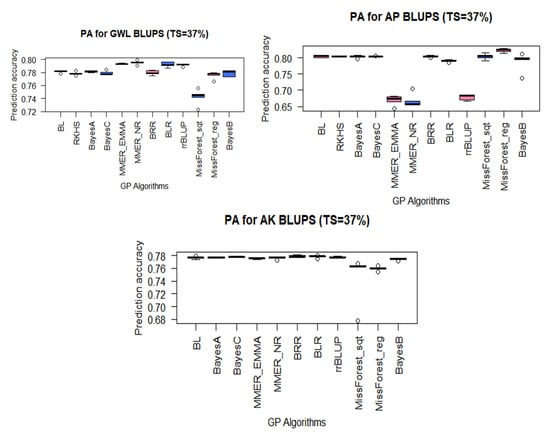 - Pérez, P.; de los Campos, G.; Crossa, J.; Gianola, D. Genomic-enabled prediction based on molecular markers and pedigree using the bayesian linear regression package in R. Plant Genome J. 2010, 3, 106. [Google Scholar] [CrossRef]