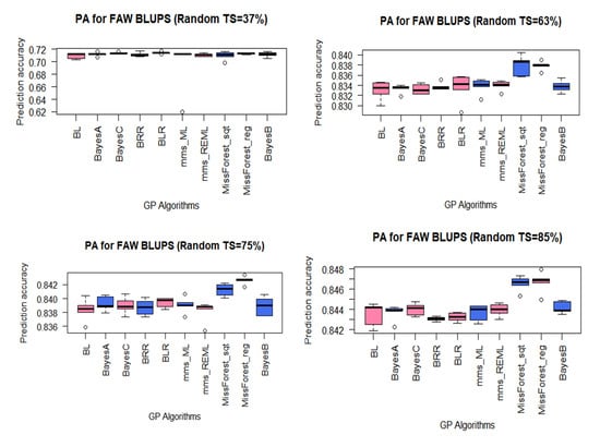 4.2. High PAs Were Achieved for FAW and MW-Resistance Traits Using Moderately Sized Training Sets