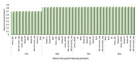 - De Los Campos, G.; Naya, H.; Gianola, D.; Crossa, J.; Legarra, A.; Manfredi, E.; Weigel, K.; Cotes, J.M. Predicting quantitative traits with regression models for dense molecular markers and pedigree. Genetics 2009, 182, 375–385. [Google Scholar] [CrossRef]