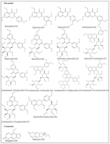 - Maksoud, S.A.; Hadidi, M.N.E. The flavonoids of Balanites aegyptiaca (Balanitaceae) from Egypt. Plant. Syst. Evol. 1988, 160, 153–158. [Google Scholar] [CrossRef]