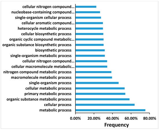 A sample of transcript analyses of top 20 biological processes that upregulate at day 4 of the induction of shoot regeneration. Only some of the processes were fitted on the Y-axis.