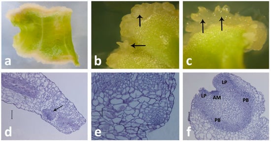 - Yang, X.; Lu, J.; Teixeira da Silva, J.M.; Ma, G. Somatic embryogenesis and shoot organogenesis from leaf explants of Primulina tabacum. Plant Cell Tissue Organ Cult. 2012, 109, 213–221. [Google Scholar] [CrossRef]