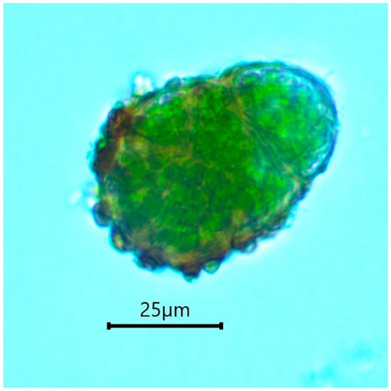 Because the minute gametophyte of B. viridis is reputedly impossible to spot in the field, all previous studies have been based on the sporophyte stage [3,4,5]. However, one recent study has described protonemal gemmae (i.e., asexual propagules) in B. viridis [13]. These gemmae are multicellular, obloid, with a warty ornamentation, and their size varies between 40 μm and 70 μm. They tend to form brownish, large and highly distinctive aggregations that are relatively easy to locate in the field (see Material and Methods section).