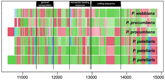Allele mining in the tertiary gene pool of sugar beet [Beta vulgaris L.]. The cyst nematode resistance gene Hs1pro−1 from Patellifolia procumbens (C. Sm.) A.J. Scott, Ford-Lloyd & J.T. Williams. is conveyed to sugar beet in a large translocation. A promoter sequence activated by nematode feeding makes this locus a target for engineering the disease response in sugar beet [40]. Major allele frequency differences across the genomic region containing Hs1pro−1, recovered from the pooled sequencing pan-genomes of six wild Patellifolia spp. populations, are shown. Colors indicate different allelic variants, shading within a color indicates variant frequency within the pool (lower = lighter). Substantial variation in the nematode responsive region can be mined from these populations. Whole-genome pooled sequencing data from 202 cultivars, breeding lines, wild relatives, and genebank accessions of Beta vulgaris is available under NCBI BioProject PRJNA563463.