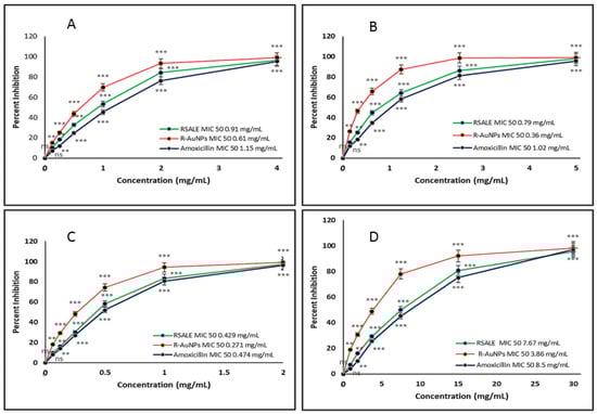 3.4. Determination of Minimal Inhibitory Concentration of RSALE and R-AuNPs