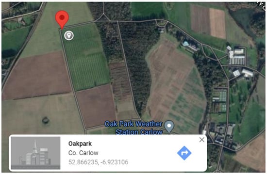 Field sampling location of site 2, 52.866235 N, −6.923106 W, source Google maps.