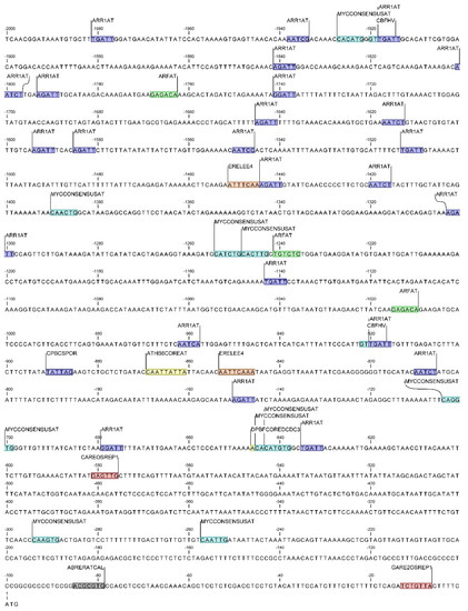 The positions of the identified cis-elements were mapped at the promoter sequence using CLC Main Workbench 7.5.1 software (ClCbio, Aarhus N, Denmark).