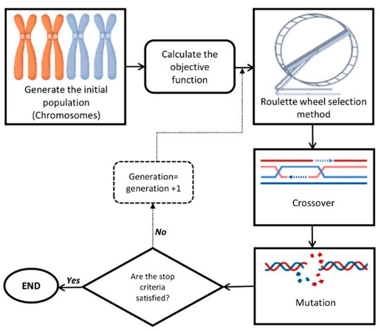 In this study, initial population, generation number, mutation rate, mutation function, selection function, cross-over fraction, and cross-over function were, respectively, considered as 200, 1000, 0.05, uniform, Roulette Wheel, 0.6, and Two-point crossover.