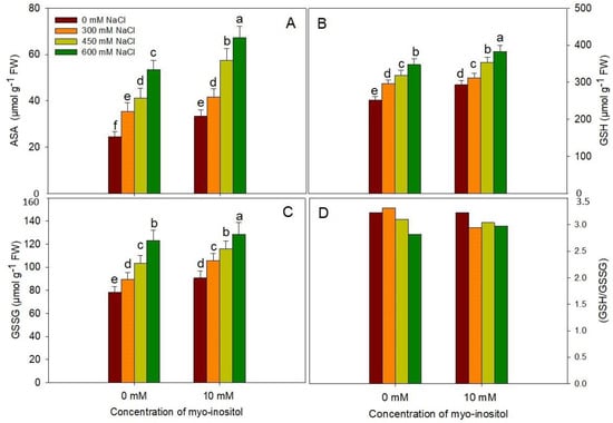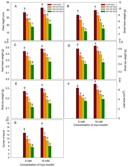 - Hu, L.; Zhou, K.; Li, Y.; Chen, X.; Liu, B.; Li, C.; Gong, X.; Ma, F. Exogenous myo-inositol alleviates salinity-induced stress in Malushupehensis Rehd. Plant Physiol. Biochem. 2018, 133, 116–126. [Google Scholar] [CrossRef] [PubMed]