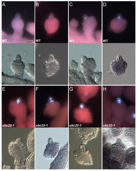 - Wang, S.; Cao, L.; Wang, H. Arabidopsis ubiquitin-conjugating enzyme UBC22 is required for female gametophyte development and likely involved in Lys11-linked ubiquitination. J. Exp. Bot. 2016, 67, 3277–3288. [Google Scholar] [CrossRef] [PubMed]