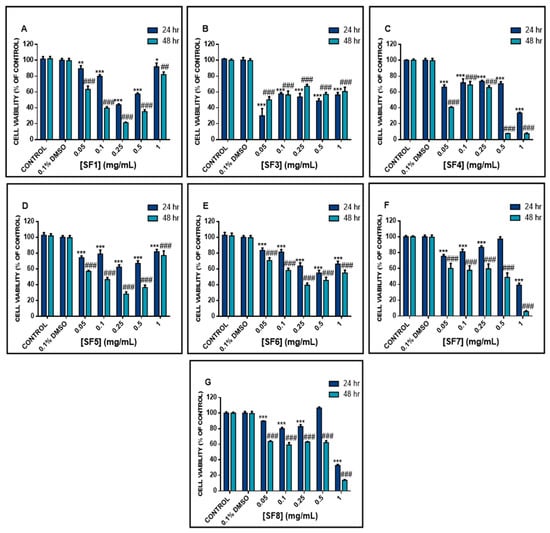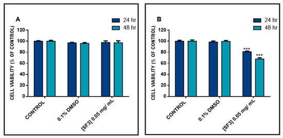 2.2. The Methanolic Extract Fraction (SF3) Exerts Either No Cytotoxicity or a Minimal One in A431 and HaCaT Cells, Respectively