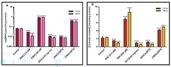 4.7. Determination of Malondialdehyde and Protein Carbonyl Contents