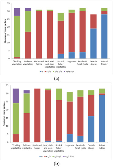 Preserving edible ruderals and local landraces in the home gardens also could be regarded as evidence, although with fading significance in the context of growing urbanization, for the importance of home gardening in supplying specific ingredients for the preparation of traditional foods that are otherwise impossible or hard to find on the market [50,75]. The variety of plant parts used and their methods of preparation also testify to the importance of garden food plants in the lives of local people and demonstrate the role of the garden as a crossroads of memories, knowledge and modern inventions for their owners [50,76].
