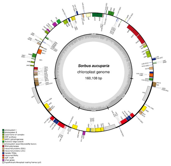 Phylogenomics based on complete chloroplast genomes is increasingly becoming the most attractive means of obtaining initial insight into the phylogeny of several plant taxa [19,20,21]. However, for this purpose complete and well-assembled chloroplast genomes of the species of interest are needed. Fortunately, due to advances in next-generation sequencing, and bioinformatic assembly approaches, a large number of newly developed chloroplast genomes have become available. The new assembly of the chloroplast genome of S. aucuparia obtained in this study extends the list of the available cpDNA genomes of the species belonging to the Maleae tribe, enabling a closer look into its phylogeny. The chloroplast genome of S. aucuparia assembled in this study is similar to other chloroplast genomes of the representatives of the Maleae tribe in terms of genome size, quadripartite structure and gene content [8,13,15,17].