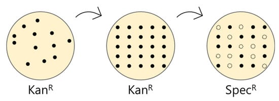 - Inoculate the well-grown colonies on new kanamycin LB plates and spectinomycin LB plates to screen the self-ligated vector transformants. Colonies that survive in kanamycin and die in spectinomycin are the colonies of interest (Figure 4).