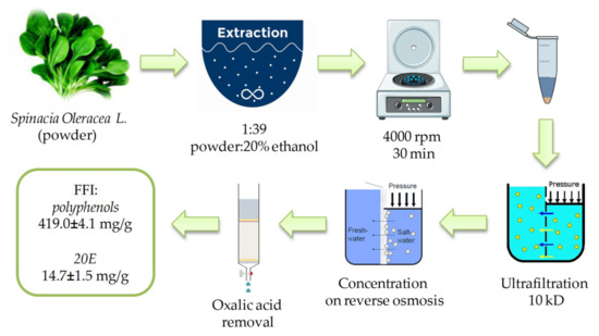 Flow chart of the FFI production from Spinacia oleracea L.
