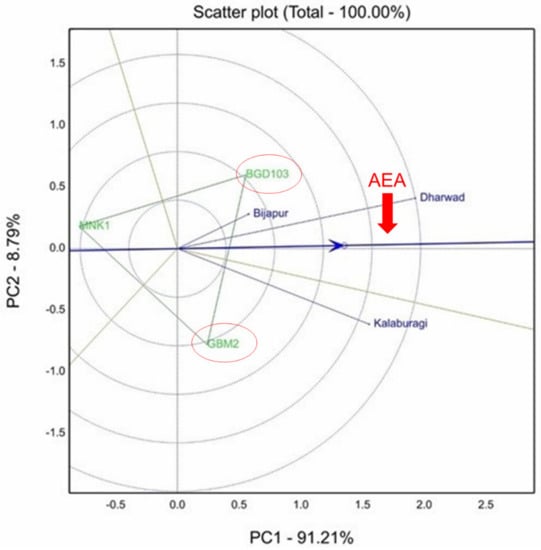 - Yan, W.; Tinker, N.A. Biplot analysis of multi-environment trial data: Principles and applications. Can. J. Plant Sci. 2006, 86, 623–645. [Google Scholar] [CrossRef] [Green Version]