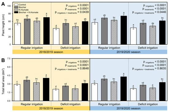 APA StyleAbdelrasheed, K. G., Mazrou, Y., Omara, A. E.-D., Osman, H. S., Nehela, Y., Hafez, E. M., Rady, A. M. S., El-Moneim, D. A., Alowaiesh, B. F., & Gowayed, S. M. (2021). Soil Amendment Using Biochar and Application of K-Humate Enhance the Growth, Productivity, and Nutritional Value of Onion (Allium cepa L.) under Deficit Irrigation Conditions. Plants, 10(12), 2598. https://doi.org/10.3390/plants10122598
