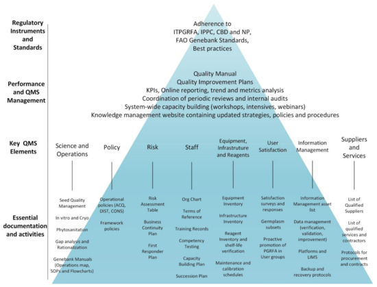 - A Genebank QMS with detailed SOPs and system by which they are regularly updated, reviewed, audited and validated.