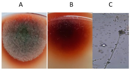 Rosmarinus officinalis leaves were collected from different sites in Upper Egypt. The samples were properly cleaned using tap water before being rinsed with sterile distilled water. Surface sterilisation was achieved by immersing samples in 75% ethanol for 1 min, 4% sodium hypochlorite for 3 min and then 75% ethanol for 30 s. After that, the leaves were rinsed in sterile distilled water and dried in the shade. Leaves were cut into small pieces and placed on previously poured glucose-agar Czapek’s plates, which were then cultured in a microbiological incubator at 28 °C for 7 days until the desired fungi grew [].