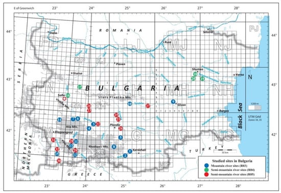 - Cheshmedjiev, S.D.; Karagiozova, T.I.; Michailov, M.A.; Valev, V.P. Revision of River & Lake Typology in Bulgaria within Ecoregion 12 (Pontic Province) and Ecoregion 7 (Eastern Balkans) According to the Water Framework Directive. Ecol. Balk. 2010, 2, 75–96. [Google Scholar]