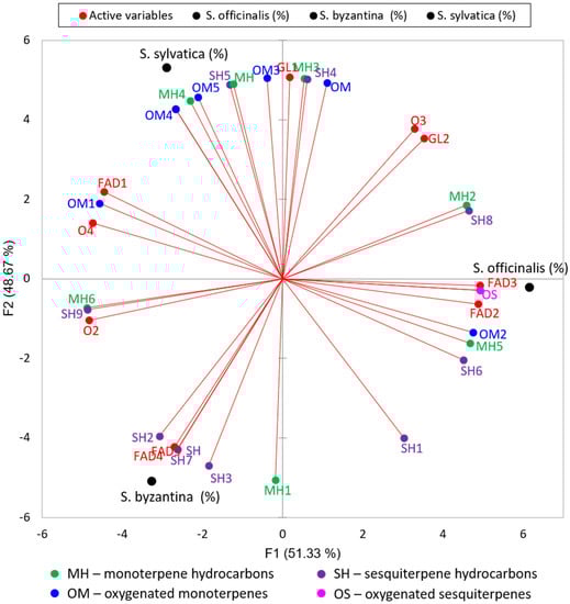 | Compound Name | S. byzantine (%) | S. officinalis (%) | S. sylvatica (%) | Compound Classification |