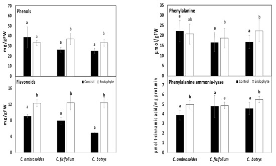 2.6. Endophytic Bacterial Treatment Improved the Functional Food Value of Chenopodium Sprouts through Enhancing Their Bioactive Primary Metabolites Levels