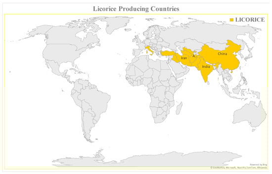 - EMA/HMPC. Assessment report on Glycyrrhiza glabra L. and/or Glycyrrhiza inflata Bat. and/or Glycyrrhiza Uralensis Fisch ex D.C., radix; European Medicines Agency: Amsterdam, The Netherlands, 2011; Volume 44. [Google Scholar]
