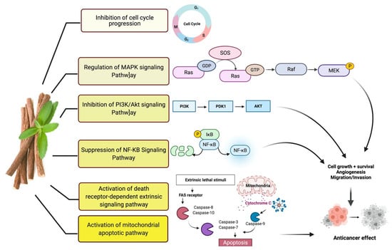 | Formononetin | ![]() | Bioactive isoflavones | They were arresting the cell cycle, inducing apoptosis, stopping metastasis via targeting numerous pathways. | [41] |