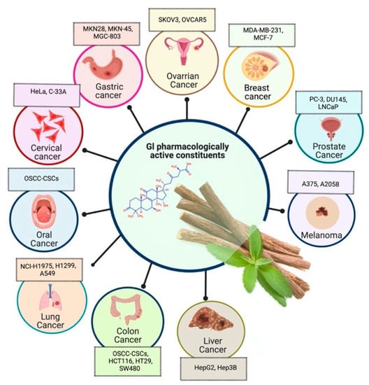 - Tang, Z.-H.; Li, T.; Tong, Y.-G.; Chen, X.-J.; Chen, X.-P.; Wang, Y.-T.; Lu, J.-J. A Systematic review of the anticancer properties of compounds isolated from licorice (Gancao). Planta Med. 2015, 81, 1670–1687. [Google Scholar] [CrossRef]