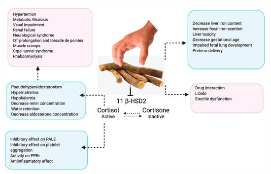 - Nazari, S.; Rameshrad, M.; Hosseinzadeh, H. Toxicological effects of Glycyrrhiza glabra (Licorice): A Review. Phytother. Res. 2017, 31, 1635–1650. [Google Scholar] [CrossRef]