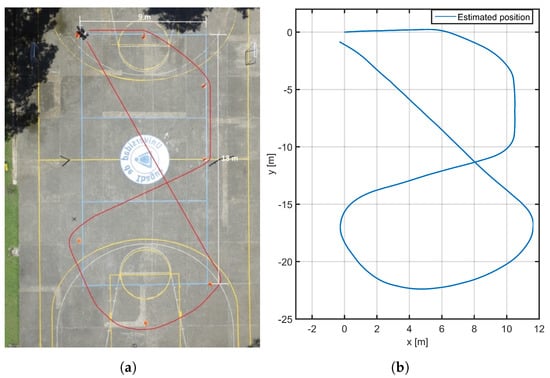 Figure 6b shows the trajectory reconstruction obtained in a rosbag file where EKF data were captured from the test carried out on the sports field. This result not only presents the correct implementation of the kinematic model, but also minimizes the measurement noise from the encoders and the IMU.