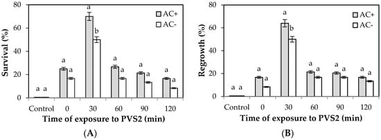 | PVS2 (min) | Regrowth a (AC−) | Regrowth a (AC+) | ||
