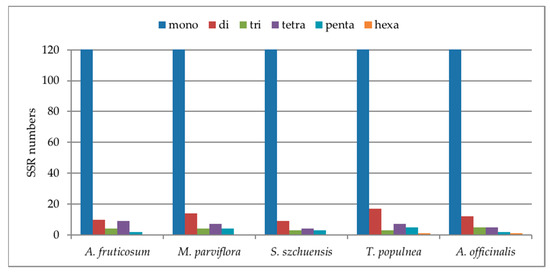 Number of different SSR types in the chloroplast genome of five Malvaceae.
