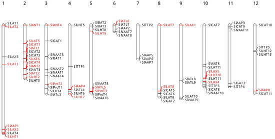 The approximate locations of SlAAT genes were identified using the available information at SGN, and mapped onto the 12 corresponding S. lycopersicum chromosomes using MapChart software [45].