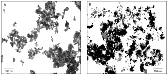 TEM image of nCeO2 25 nm (A) and 50 nm (B) suspensions.
