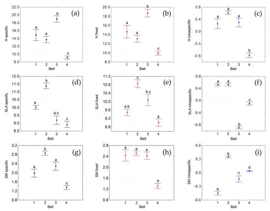 - Siefert, A.; Violle, C.; Chalmandrier, L.; Albert, C.H.; Taudiere, A.; Fajardo, A.; Aarssen, L.W.; Baraloto, C.; Carlucci, M.B.; Cianciaruso, M.V.; et al. A global meta-analysis of the relative extent of intraspecific trait variation in plant communities. Ecol. Lett. 2015, 18, 1406–1419. [Google Scholar] [CrossRef]