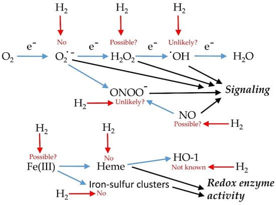- Hancock, J.T.; Hancock, T.H. Hydrogen gas, ROS metabolism, and cell signaling: Are hydrogen spin states important? React. Oxyg. Species 2018, 6, 389–395. [Google Scholar] [CrossRef]