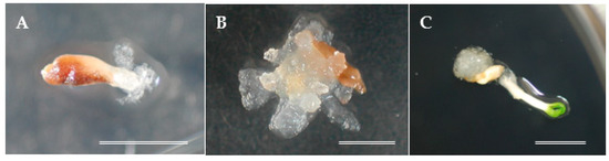 - Salajová, T.; Salaj, J. Somatic embryogenesis in Pinus nigra: Embryogenic tissue initiation, maturation and regeneration ability of stablished cell lines. Biol. Plant. 2005, 49, 333–339. [Google Scholar] [CrossRef]