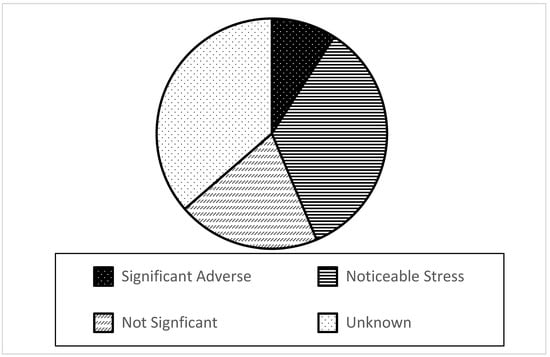 Staff affiliated with GLANSIS have conducted comprehensive impact assessments for the overwintering and reproducing aquatic nonindigenous species of the Great Lakes since approximately 2010 using a protocol detailed in NOAA Tech Memo 161 []. All relevant original literature (excluding duplicates) are entered into the database and available through the USGS Nonindigenous Aquatic Species (NAS) reference database (https://nas.er.usgs.gov/queries/references/default.aspx accessed on 15 January 2021) as well as linked from each GLANSIS profile; the total literature included in the NAS database for the 55 aquatic nonindigenous plant species included in this paper exceeds 3500 original sources. A subset of this literature (639 original sources for aquatic nonindigenous plants) was used in the development of impact assessments. Most sources are from peer-reviewed literature and/or government reports and include direct laboratory and field observations of competitive impacts as well as observations of decline in native plant species concomitant with expansion of the nonindigenous species. Statements appearing in the peer-reviewed literature that constitute expert opinion (e.g., statements in discussion and conclusion sections) are included but flagged in the assessments in a way that influences final categorization toward “unknown”. Each assessment is reviewed and updated at least every fifth year based on a review of new literature and subject to external review. Full results of these impact assessments for each species, including all original references used in the development of both the full assessment and the particular subset examined here, are available in the Appendices of TM-161, TM-161b, and TM-161c [,,]. Additional unpublished impact data may in some cases be attached to each collection record; while nominally accessible individually via the database, these are not easily extracted as a whole set from the current portal and are largely excluded from this analysis unless also noted in the Technical Memo series. Current summaries for each species (and critical literature citations) are also available online at https://www.glerl.noaa.gov/glansis (accessed on 15 January 2021).