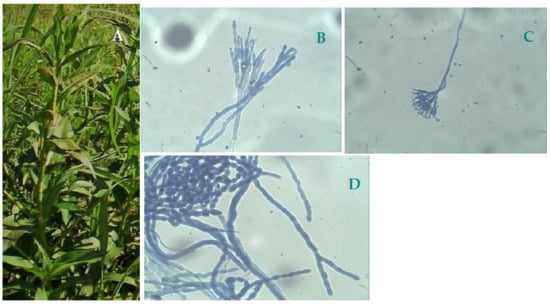 The three extracts obtained from dried-leaves of P. acuminata were evaluated for their antifungal activities against P. digitatum, P. italicum, and M. fructicola using the micro broth dilution assay (Table 1). Figure 1 shows a picture of the plant species in its natural environment (A) and light microscopic photographs of the three phytopathogens under study (B–D).