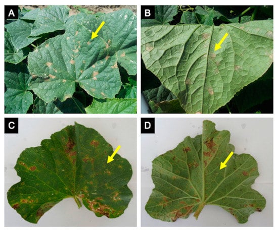 - Call, A.D.; Criswell, A.D.; Wehner, T.C.; Ando, K.; Grumet, R. Resistance of cucumber cultivars to a new strain of cucurbit downy mildew. Horts 2012, 47, 171–178. [Google Scholar] [CrossRef]