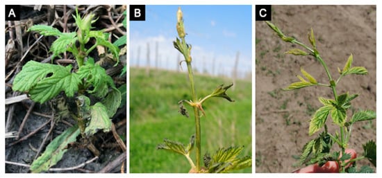 - Purayannur, S.; Miles, T.D.; Gent, D.H.; Pigg, S.; Quesada-Ocampo, L.M. Hop Downy Mildew Caused by Pseudoperonospora humuli: A diagnostic guide. Plant Health Prog. 2020, 19, 173–179. [Google Scholar] [CrossRef]